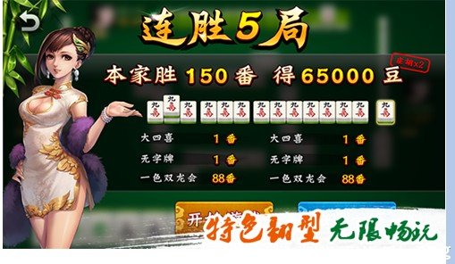 正宗的国际计番规则,成胡即可的低门槛胡牌规则,80多种番型计分方法,联网模式下的新手、初级、中级和高级四种可选擂台,强大高智的单机玩法等等都是《欢乐麻将》的趣味刺激所在。
