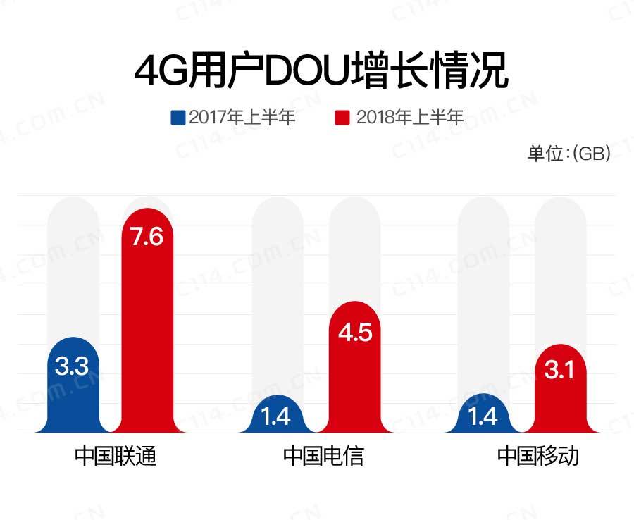不限量套餐开启了真正的移动互联网狂欢时代。曾经高攀不起的各种流量套餐、流量加油包,现在都已经平民化为触手可及,而且三大运营商还在进一步竞相“推陈出低”中。这样一来,离未来用户端的流量免费或者转变为“后付费”模式不知道还有多远。流量资费门槛的持续降低,激发了用户流量需求,刺激了整个通信互联网行业的快速发展。用户月均流量使用情况详见上图。在用户DOU高企的同时,运营商不得不面对一个现实的经营难题,那就是既能保有存量用户,又能在不洗刷存量老用户的前提下获取增量用户。这种左右手互搏,现在已经被中国联通的腾讯王卡证明了“鱼和熊掌不可兼得”。实际上,受限于人口自然增长速度的影响,在真正的新用户已经非常少的情况下,这也就变相解释了套餐资费降价、用户流量飙升、流量占收比下滑之间的关系。全国移动用户DOU从去年的1.55GB飙升至今年的4.24GB。对于中国联通和中国电信,特别是对中国联通来说,首先大面积推广各种不限量套餐的结果就是,用户DOU远超行业平均的4.24GB。