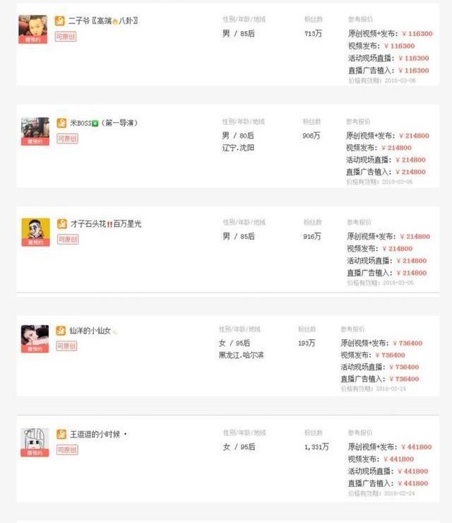 而在某直播平台上,网红主播们报价的广告植入费达到几十万元。