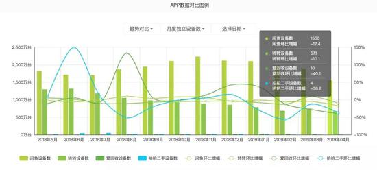 从二手市场竞争局面来看,拍拍和爱回收合体后的体量,也无法与闲鱼和转转竞争。比达咨询提供的数据显示,2019年3月份,闲鱼APP月活用户数达到2439.9万人,转转月活月活用户数达1142.9万人,排名第三的微拍堂月活用户数骤降至155.9万人,市场两强格局已经形成。