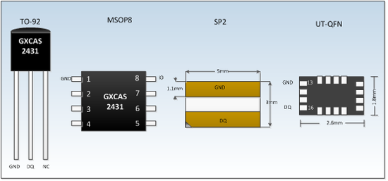 目前GX2431封装形式有TO92、MSOP8、SP2、UT-QFN等四种封装形式,可广泛应用于智能光纤ODN设备,打印机墨盒以及具有配件认证的应用领域。
