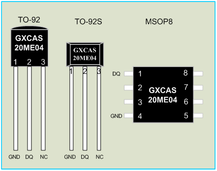 目前GX20ME04采用了TO92、TO92s和MSOP8三种封装,其他封装形式可以定制。可广泛应用于体温测量、药品储藏、美容仪器以及宽温度范围内高精度应用场合以及用户需要存储的场合。
