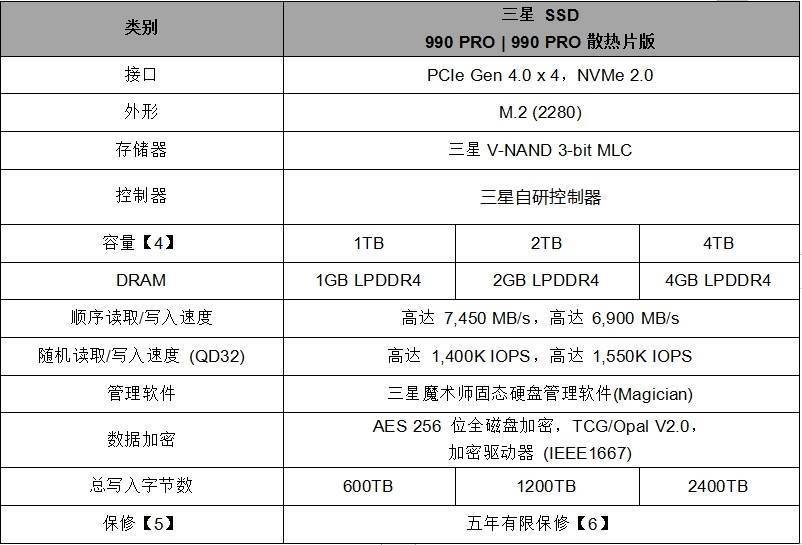 【3】基于 1TB 容量型号的内部测试结果表明,980 PRO 顺序读取/写入能效为每瓦 1,129/877 MB,990 PRO 顺序读取/写入能效为每瓦 1,380/1,319 MB。