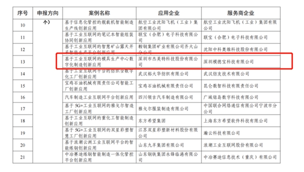 工业互联网平台创新领航应用案例聚焦工业企业数字化转型面临的关键问题,本次遴选主要围绕平台化设计、数字化管理、智能化制造、个性化定制、网络化协同、服务化延伸等六大应用模式进行征集,杰美特的“基于工业互联网的模具生产中心数字化制造创新应用”入围智能化制造应用模式。