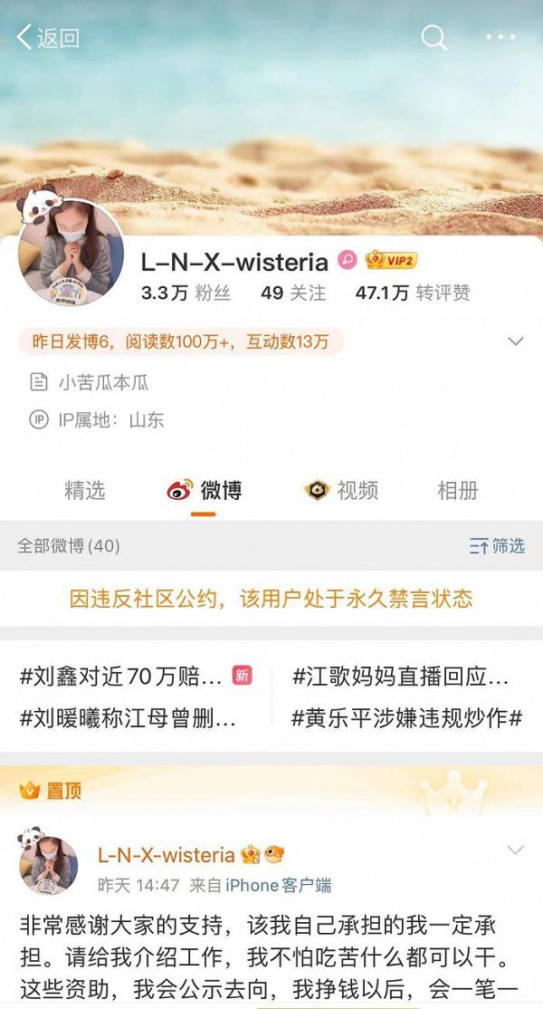 2023年1月4日,刘鑫(现用名刘暖曦)的新浪微博账号个人页面显示,“因违反社区公约,该用户处于永久禁言状态。”