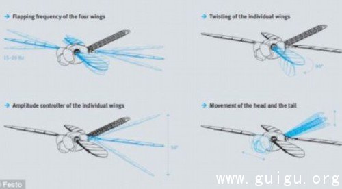 德国费斯托公司研制的机器蜻蜓BionicOpter,翅膀采用碳纤维和箔材料,可使用手机进行控制