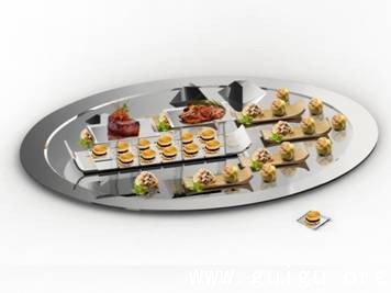在此次博古斯大赛中,中国厨师以“桂林山水-GuilinLandscape”中西合璧的菜品,惊艳赛场,而菜品托盘可谓是一大亮点,将中国闻名世界的桂林山水融入托盘设计中,以中国特色“船”形态的容器来盛放食物,同时搭配具有装饰性的山,使得整个托盘呈现出秀丽的山水风光,颇具中国特色。据悉,此菜品的托盘正是由双立人提供。精美、高品质的不锈钢托盘,完美地将船型容器和菜品映衬出来,如同水中的倒影。