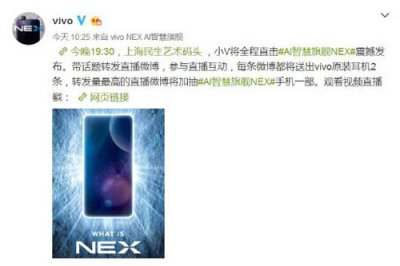 vivo NEX或有双版本 今晚19:30发布会直播见分晓