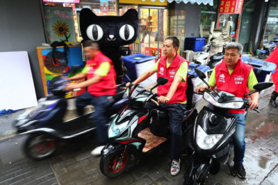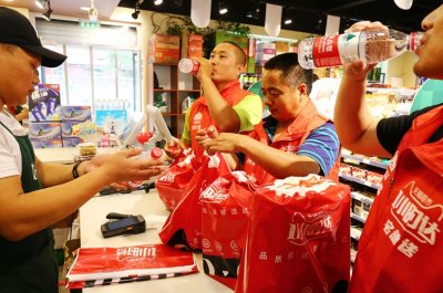 天猫联合菜鸟在北京、杭州两地为快递员送清凉